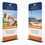 Los soportes retráctiles estándar para pancartas son ligeros y económicos. Su compacto soporte de aluminio cuenta con dos patas plegables que se abren para mayor estabilidad durante la exhibición y se guardan en la bolsa de transporte incluida. Los gráficos a todo color vienen en insertos de tela con impresión UV, bordes antirrugas y reverso gris opaco. Para quienes buscan un estilo tradicional, también ofrecemos impresiones en vinilo mate de 355 g. Ideales para viajar, estos soportes se exhiben en segundos y, al finalizar la exhibición, el inserto se retrae en el soporte para su seguridad.